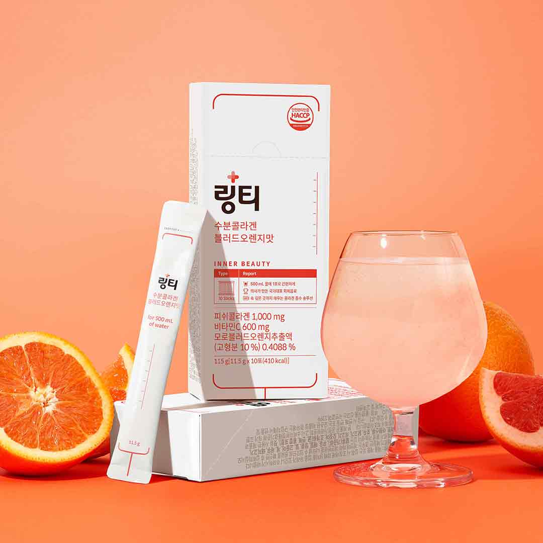LINGTEAうるおい水分コラーゲンは、コラーゲン特有の味を最小化したブラッドオレンジ味で、大人の方からお子様まで美味しくお召し上がりいただける製品です。
